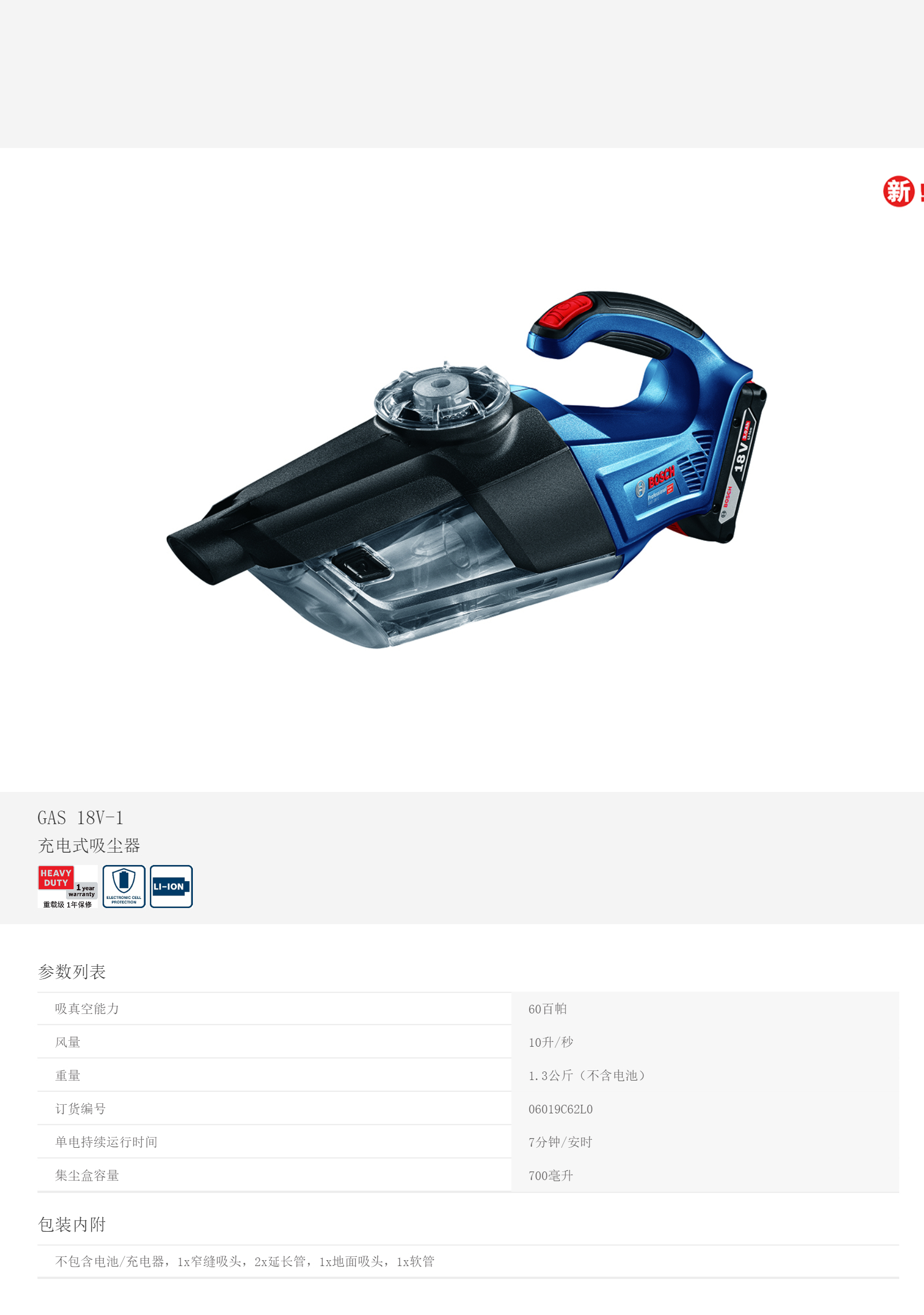 產(chǎn)品名字:博世充電吸塵器GAS18V-1